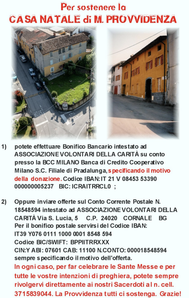 Sito Ufficiale di Madre Provvidenza (al secolo Anna Maria Andreani), gestito unicamente dalla presente Associazione, in qualità di Sua Erede Testamentaria. Altri soggetti Web, che dovessero operare nel Nome di Lei, non vanno presi assolutamente in considerazione!!! CONTATTACI AL +393715839044